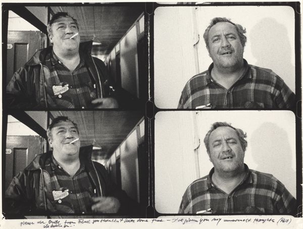Curator: This untitled photographic work by Martin Schweig at the Harvard Art Museums presents two studio portraits of an elderly man. The sheet measures 20.3 by 25.4 centimeters. Editor: He seems like a character, doesn’t he? A touch of melancholy in those eyes, despite the cigar and fancy suit. Curator: The double portrait, on a single sheet, speaks to the processes of early photographic production, where efficiency in material use was key. The backdrop is painted. Editor: I love the stark contrast! It gives him an almost theatrical presence, like he's about to deliver a soliloquy. Curator: Right, and the formality of the pose, the suit, implies a certain social standing. The cigar, of course, is a prop, signifying leisure. Editor: Maybe it's more than just a prop, though. It could be a symbol of defiance, a quiet rebellion against the constraints of aging. Curator: Or simply an everyday indulgence. Regardless, Schweig captures a moment in time, revealing the sitter’s presentation of self. Editor: It’s a fascinating glimpse into a life—real or imagined. Thanks for pointing out its intriguing elements! Curator: Indeed, it reminds us that art is often about revealing the means of production while simultaneously shaping perception.