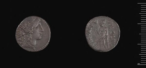 Editor: Here we have the Drachm of Ariarathes VII. It's intriguing how such a small object can tell us so much. What symbols stand out to you in this piece? Curator: The figure of Athena on the reverse is powerful. Her presence signifies wisdom, warfare, and craftsmanship, suggesting Ariarathes VII aligned his rule with these ideals. Does this imagery evoke power and stability to you? Editor: It does, especially knowing it was used as currency. Thanks for elaborating on the symbolic language!