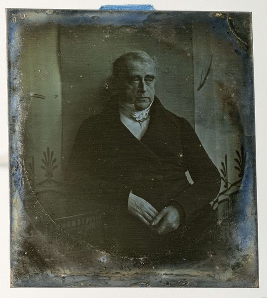 This is an anonymous portrait of Geldolph Adriaan de Lange, created using an early photographic process. The portrait speaks to the rise of the middle class, and their increasing desire to participate in cultural and political life. The development of photography provided new ways of seeing and representing oneself and one's community. Consider the conventional depiction of men in positions of power, often represented with symbols of intellect or status; here, De Lange holds what appears to be a book, signifying education and possibly affluence. The formal attire and composed posture also speak to a desire for respectability and social standing. The identity of the artist is unknown, but we can consider how the act of creating this portrait, with its inherent biases and perspectives, reflects the society and its values at the time. What does it mean to see this image today, understanding the power dynamics at play in its creation and the historical context it represents?