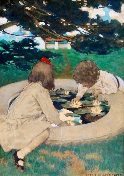 James Tissot captured "Mrs. Newton with a child by a pool" with oil on canvas, immortalizing a scene steeped in symbolic gestures. Note the outstretched hand of Mrs. Newton towards the water. This recalls images of nymphs or water spirits, figures often associated with healing and life. This gesture, imbued with a sense of longing and protection, invites contemplation. Consider how this connects with similar motifs across different times. The motif of the reclining female figure has its roots in classical antiquity, where it was often linked to notions of fertility and harmony with nature. Tissot reinvents it with a motherly intimacy, emphasizing the bond with her child. Here, the artist touches on collective memories of motherhood, a force engaging viewers on a deep, subconscious level. Observe how these symbols resurface and evolve across different historical contexts. From a classical expression of harmony with nature to an intimate portrayal of maternal connection, the images we create are not static. They are cyclical, shaped by culture, memory, and emotion.