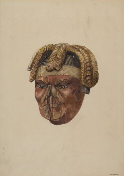 Curator: Before us we have Grace Halpin's drawing, aptly titled "Door Knocker," created around 1937. It’s rendered in pencil and charcoal on paper. What strikes you initially? Editor: An austere yet decorative feel—that metallic sheen, but it also seems very grounded, very much about process. Is it just me, or does the depiction lack a sense of easy domesticity given that a door knocker implies access? Curator: The interplay of textures is fascinating. Observe how Halpin meticulously renders the gradations of light and shadow, defining the form of the object. Notice the classical head amidst geometric forms—it provides an elegant structural complexity. Editor: Yes, it's definitely more than meets the eye, the production speaks of intense craftsmanship but is not even the actual, manufactured knocker! Consider what the act of drawing itself—the pressure, the layering of charcoal—suggests about labour. It begs the question: Why record this everyday object with so much artistic labor? Curator: Perhaps she's isolating a familiar object to explore the deeper questions about classical ideals represented and function. By removing it from context, Halpin compels us to analyze its formal characteristics, its construction of volume and plane. Editor: Perhaps. And by distancing it via this form, is she implying the coldness of classical authority, like architecture, versus everyday comfort? Curator: That's insightful; it adds to the layers. What seemed initially representational, now shifts—the meticulous rendering emphasizes symbolic resonance. Editor: In that case, what looked simply rendered on paper may also speak about cultural context! After all, objects reflect consumption; this "Door Knocker" is as much about economics as it is about art or functional form. Curator: Indeed! Considering the date it was rendered adds more weight, lending credence to these ideas and questions we posed. What at first appeared to be just a drawing invites multiple viewpoints. Editor: Absolutely. Thinking through it with a Materialist viewpoint I might ponder Halpin’s place and identity reflected in the production process versus that finished drawing alone.