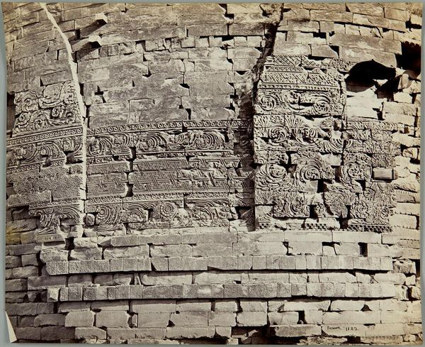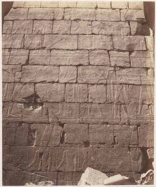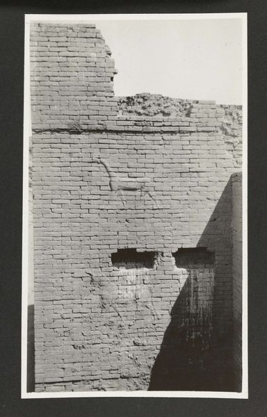 Editor: This photograph, "Untitled (Maya Temple, Chichen Itza, Mexico)" by Josef Albers, really emphasizes the rough texture and massive scale of the structure. What strikes you about this image? Curator: I see the repetitive labor inherent in the temple's construction. Consider the sheer volume of stone, each piece individually placed. How does Albers's composition speak to this manual process? Editor: It makes me think about the community effort and skill required to build something so monumental without modern machinery. Curator: Exactly. And how does photography, as a relatively new medium at the time, democratize access to such a site? It shifts the power dynamic of experiencing such grandeur. Editor: That's a perspective I hadn't considered – the photograph itself as a tool of accessibility. Curator: It invites us to contemplate the relationship between materiality, labor, and the democratization of art. Editor: Thanks, now I understand how Albers's photo captures both the physical and social construction of the temple.