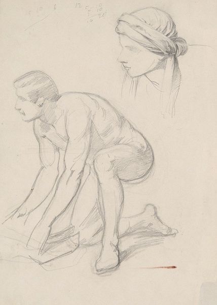 Curator: Here we have William Valentine Schevill's "Studies of Female Body Parts," housed here at the Harvard Art Museums. Editor: It gives the impression of an artist deeply engaged in their craft, a flurry of sketches capturing fleeting forms. The materiality itself speaks of process. Curator: Indeed. The composition arranges limbs and features across the paper, exploring line and volume with a focus on anatomical structure. Observe the contrast between the graphite and sanguine chalk. Editor: What I find compelling is that the red chalk brings a warmth, an immediacy, to the cool precision of the graphite. Was this perhaps a way of engaging with the body, moving beyond just a clinical study? Curator: Perhaps. The fragmented nature prompts us to consider the gaze, the reduction of the body to component parts for study. We might also consider the semiotics of the partial figure. Editor: And yet, there is such intimacy conveyed through these seemingly detached fragments. I wonder about the social context of the model, the labor involved in posing. Curator: Food for thought. It's certainly a piece that rewards close looking and consideration of both form and context. Editor: Precisely, and I appreciate how it blurs the lines between the detached study and the expressive, tangible qualities of the materials.