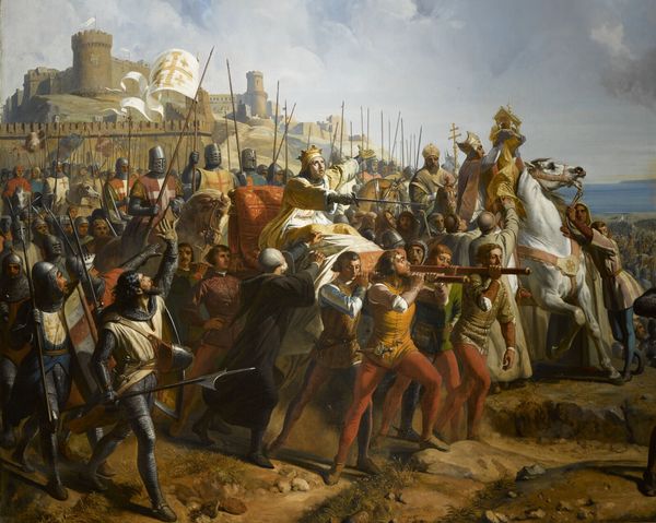 Gustaf Wappers created this large canvas depicting an "Episode of the September Days 1830" in Brussels. The painting overwhelms with its dynamic composition and dramatic use of light and shadow, drawing the eye into the heart of the conflict. Wappers masterfully uses diagonals to convey movement and chaos, while the figures are arranged to guide our gaze through the scene. The somber palette, dominated by browns and grays, is punctuated by the vibrant colors of the Belgian flag. Wappers was part of the Romantic movement. This work is a prime example of Romanticism's emphasis on emotion and the sublime within historical events. The composition is divided between a dark foreground with wounded civilians, and a dynamic background symbolizing the revolutionary fervor. Ultimately, the painting's lasting impact lies in its ability to provoke reflection on history, representation, and the power of art to shape collective memory.