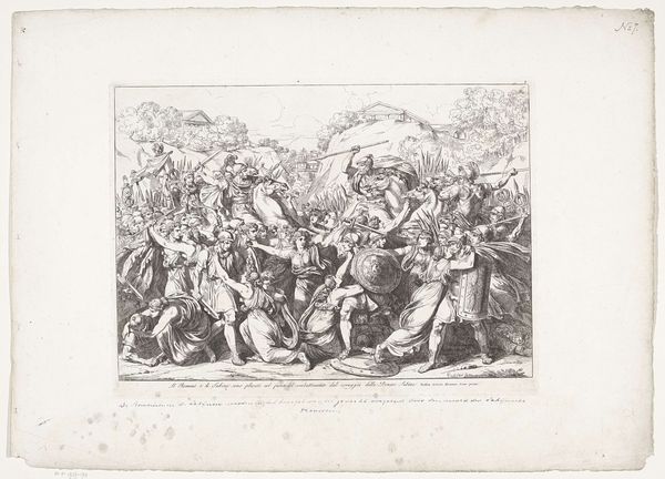 Bartolomeo Pinelli created the etching "Aulus Cornelius Cossus doodt Lars Tolumnius" in the early 19th century, amid a surge of nationalist sentiment in Europe. Pinelli, an Italian artist, often turned to the stories of ancient Rome, recasting them with contemporary political undertones. Here, we witness Aulus Cornelius Cossus, a Roman soldier, slaying Lars Tolumnius, king of the Etruscan city of Veii. This scene isn't merely a historical depiction, but a reflection on power, valor, and the identity of a nation. The artist uses strong lines to highlight the tension and drama of the moment: the fallen king, the triumphant soldier. But consider who gets to tell this story. Who is remembered as the hero? What does it mean to glorify war and conquest? The act of immortalizing this ancient victory speaks to the desire for a unifying narrative, reminding us that art is never neutral. It's a reminder that even historical scenes are shaped by the present.