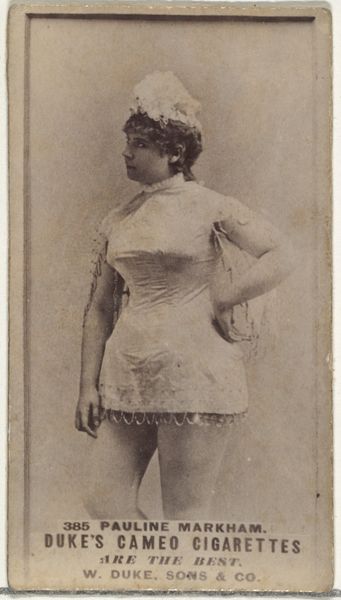 This is Irene Verona, a photograph from the Actresses series, made in the United States by Kinney Brothers to promote Sweet Caporal Cigarettes. The image provides a fascinating glimpse into the cultural landscape of the late 19th century and the ways in which images of women were consumed. This photograph, mass-produced as a promotional item, reflects the increasing commercialization of entertainment and the growing popularity of actresses as public figures. The pose, the styling, and the very act of circulation through tobacco products speak volumes about the socio-economic context in which this image was created. The institutional history of museums helps us to understand how an object such as this, originally a piece of commercial ephemera, comes to be valued and preserved as a cultural artifact. Understanding this image requires us to examine the social and cultural norms of its time, and to consider the role of institutions in shaping our understanding of art and culture.