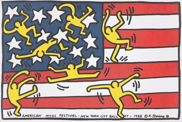 Alexander Calder, best known for his invention of the mobile, made this print, Flying Colors, using gouache and ink. Calder’s works often present a playful approach to abstraction, yet they are deeply rooted in his engineering background. Here, we see blue stars floating amongst red wavy lines, invoking the imagery of the American flag. Calder made this artwork in a period marked by intense political and cultural shifts in the United States. His choice of such a recognizable symbol invites us to reflect on how national identity is constructed and perceived. The bright colors and dynamic composition create an uplifting and celebratory visual experience. However, the simplicity of the forms also carries a sense of childlike innocence. Calder once said, "My whole theory about art is the disparity that exists between form, masses, and movement." Consider how Calder balances form and movement within a charged, recognizable cultural symbol. Flying Colors invites a dialogue between national pride and the complexities inherent in the American experience.