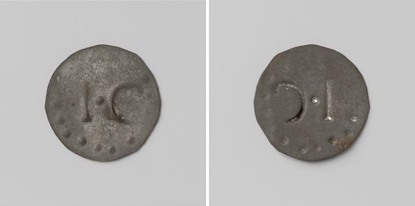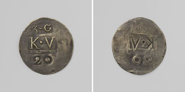 Curator: Here we have an engraving known as "Hersteld Lutherse Gemeente," dating from after 1791, crafted by Rensen. It appears to be a metal print. Editor: My initial thought? Austere. The cold metal, the stark lettering... it has the weight of authority, but also a sort of weary stoicism. Curator: That austerity, I think, reflects the context. The "Hersteld Lutherse Gemeente"—the Restored Lutheran Congregation—emerged from specific theological disputes and social pressures within the Dutch Lutheran community. This engraving would have circulated within that context, reinforcing identity and belonging. Editor: The letters “HLG” command the space and feel symbolic of the strength required of those seeking to restore or repair any faction. It makes me wonder about the emotional weight those letters held for members of that congregation. Did they serve as a rallying cry, a source of comfort, or perhaps even a reminder of past struggles? Curator: Exactly! These objects, even small ones, served as material culture anchoring their beliefs. Also, prints at that time played a crucial role in disseminating information and solidifying community identity during a time of shifting social structures and political landscapes. It solidified group membership. Editor: It’s fascinating how such a simple design can hold so much historical and emotional depth. It shows how we imprint meaning onto even the most commonplace objects. You know, this almost feels talismanic—something to carry as a reminder and a declaration. Curator: Indeed. When you look at it that way, these material remains offer insights into past struggles and victories and demonstrate community. They can even show social relations within the broader context of society. Editor: Thinking about the piece this way really humanizes it and gives me a greater appreciation for the struggles and beliefs represented by these historical factions. Curator: Agreed. It’s these connections that bring us closer to those who came before us and is proof of a lasting social impact through even seemingly minor objects.