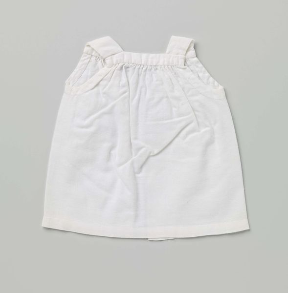 Editor: This is a photograph of a child's undershirt, a "Hemd zonder mouwen, kleinmodel" created around 1888-1894. It looks almost ghostly in its simplicity and stark whiteness, like a relic from a bygone era. What do you see when you look at this image? Curator: Ah, yes, the humble undershirt! It speaks volumes, doesn't it? The plainness is deceptive. It reminds me of a blank canvas, representing the potential and vulnerability of childhood. The choice to photograph such an everyday item... well, that feels radical for the time. Did the photographer intend to elevate the mundane, or simply document a teaching tool from the Deventer school? It's so...unassuming, yet quietly powerful. Editor: I hadn’t considered it as potentially subversive. The "teaching tool" aspect is interesting, especially since the name 'G. Glas' is mentioned in metadata - is this possibly related to a teacher that used this item at school? Does the lack of embellishment mean it was made to be strictly utilitarian? Curator: Perhaps, though consider how ideas about "utility" have shifted through time. Clothing, even underwear, carries cultural weight. This garment whispers about hygiene practices, societal expectations, even the evolving concepts of childhood comfort. It could also point at folk-art roots or aspirations, when considering simplicity and limited possibilities to produce highly original and recognizable artifacts. Editor: It’s strange to think that something so small and unassuming can be a window into so many different facets of life in the late 19th century. I guess even underwear has its story to tell. Curator: Exactly! Isn't it wonderful how art lets us find echoes of ourselves, and hints of human experience, even in the most unexpected corners? This piece proves, I think, that we should be wary of taking 'banal' at face value; who knows what is waiting just beneath?