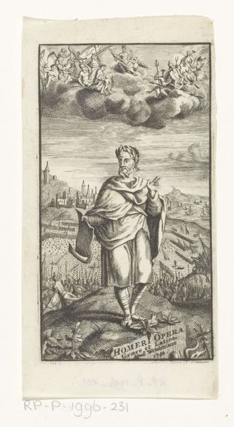 Editor: We are looking at "Jona," a print created around 1575 by Johann Sadeler I, currently held at the Rijksmuseum. It’s an intaglio, made with pen and engraving. The contrast between the detailed foreground and distant cityscape is quite striking, though I find myself drawn to the rather unsettling presence of what seems to be Jonah emerging from the whale’s mouth. How do you interpret this work from a formalist perspective? Curator: From a formalist vantage, we can observe that the engraving utilizes a very consistent hatching and cross-hatching technique, contributing significantly to the perception of depth and texture. Consider the positioning of Jona relative to the distant cityscape; notice how Sadeler used Jona's figure as a visual anchor, creating spatial dynamics. The formal elements of line, tone, and the calculated arrangement within the composition effectively convey the narrative. Do you perceive a deliberate structural organization in this print? Editor: I hadn't considered the spatial relationship in such detail, but I can now see how Jonah acts as this fulcrum that then projects into the deep space behind him. Do the lines around the border and the branches play a role too, containing the movement? Curator: Precisely. They are elements defining a frame. Each detail, from the figuration to landscape, is painstakingly crafted with precision, yet also a sense of deliberate distortion which serves to elevate the narrative. The interplay of the different elements guide our interpretation, drawing our focus to symbolic and narrative implications of the biblical theme. Editor: Thinking about line and space has really altered how I see it. I appreciate learning more about the relationship between the form and the narrative. Curator: Indeed. A close inspection unveils the sophistication through compositional ingenuity and refined linework. This type of analysis is core to the Formalist perspective.
