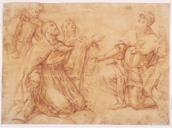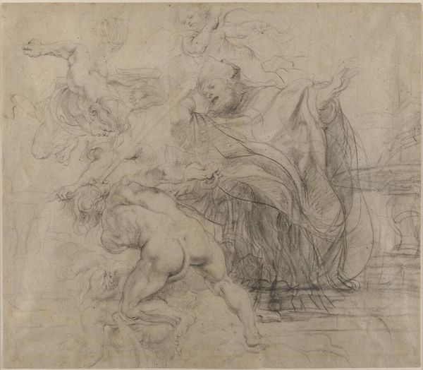 Luca Giordano rendered this drawing of the Holy Trinity in sanguine. Here, God the Father raises his right hand, a gesture resonating with power and authority, derived from ancient Roman oratory. This motif, used for centuries to denote divine command, also echoes in secular contexts as a symbol of leadership and control. Consider how this gesture reappears across time, from emperors addressing their legions to modern political figures rallying support. Its persistent use highlights a deep-seated human need for leadership and direction. The emotional weight of this image resides in its capacity to evoke a sense of awe and submission. Such imagery taps into our collective memory of authority figures, both benevolent and authoritarian, engaging viewers on a subconscious level. The symbol's non-linear journey through history reveals how cultural symbols are continually reborn, adapted, and imbued with new meanings.