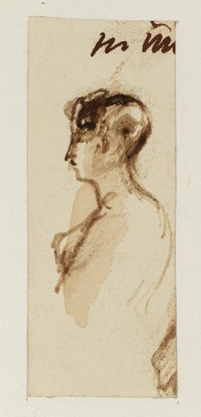 Curator: This delicate drawing is "Head of a Woman with her Hair Up, in Profile" by Washington Allston. Though undated, it resides here at the Harvard Art Museums. Editor: It's quite understated, isn’t it? The simplicity of the line and the soft color of the paper create a sense of quiet introspection. Curator: Allston was working within a Neoclassical tradition that valued idealized beauty, but he was also exploring Romantic themes of emotion and inner experience. The profile view, of course, lends itself to statuary, to a sense of the monumental, even in this small format. Editor: The material itself, the paper and the charcoal, speak to a provisionality, though. It feels like a fleeting impression, a sketch capturing a moment, not necessarily striving for permanence. Was this preparatory for another work, perhaps? Curator: It very well could have been. Allston often made studies of figures and faces for his larger history paintings. This drawing captures a certain sensibility, a yearning for something beyond the immediate. Editor: It's interesting how the materiality softens that academic edge. The sketchiness lends it a vulnerability that a more finished work might lack. Curator: Indeed. It offers a glimpse into Allston's process and, perhaps, into the very human experience he sought to represent. Editor: A beautiful reminder that even in studies, value and emotion persist.