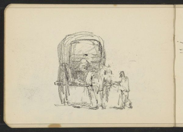 Curator: This print by Johan Michaël Schmidt Crans, created around 1867, is titled "Spotprent op actuele politieke kwesties, 1868," or roughly translated, "Cartoon on Current Political Issues." It’s made with engraving, pen, and ink. Editor: My first impression is controlled chaos. All these lines, almost scribbled in places, give it a frenetic energy, like something urgent is being conveyed. It also feels darkly funny, with a bit of a sinister edge, if I'm being honest. Curator: Exactly! The seemingly rushed execution is very much by design here. Schmidt Crans, a very prolific artist, was responding directly to the shifting political landscape of the Netherlands at this time. Notice the crowded scene within the carriage. Editor: Yes! It’s overloaded. The titles on all those packages—"Fragile," "Neutral School," "Congo Tea"—they read like a recipe for disaster. The artist clearly seems to think so. The combination of recognizable figures of that time as coach driver with these references paints a very sharp satirical critique. Curator: Absolutely. Consider the social climate; there were ongoing debates surrounding education, colonial policies—all issues reflected in these labeled "gifts." Sinterklaas, normally associated with generosity, is here depicted as steering a wagon filled with questionable commodities. Editor: And it really resonates even now. Even without knowing the specifics, the imagery feels relevant to the messiness of modern politics. It speaks to a feeling of things being out of control, almost teetering on the edge. There’s a definite sardonic feel to the way figures are represented. Curator: This sardonic representation is indeed what helps convey Schmidt Crans' position so potently. And that, of course, would have created a vital moment of public and even private dialogue at that moment in history, perhaps in the comfort of one's own home. Editor: Seeing art used as a weapon, even a humorous one, is really interesting. You gain these glimpses into societal issues from centuries ago; in some ways it still very accurately paints today’s dynamics. The fact that humor allows hard things to be broached creates such a fantastic impact, in this drawing as in many others. Curator: Indeed. A small, densely layered cartoon that delivers lasting resonances.