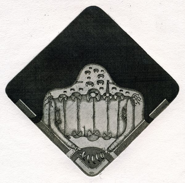 Oleksandr Aksinin made this artwork, "PF 1983. Cards," using pen and ink. It’s all about the meticulous detail, like he's building a whole world with tiny marks. Look at the cards, each one filled with its own little story. The ink is dense, creating a deep contrast that feels both ancient and otherworldly. It's not just a drawing, it's like he's conjuring symbols and meanings, inviting us to decode them. There's a central figure that’s both human and totem-like. I think of Paul Klee, how he also built up imaginary worlds and languages. What is so compelling about Aksinin's method is that he doesn't offer any answers. Art isn't about answers, it's about opening up questions, inviting multiple interpretations.