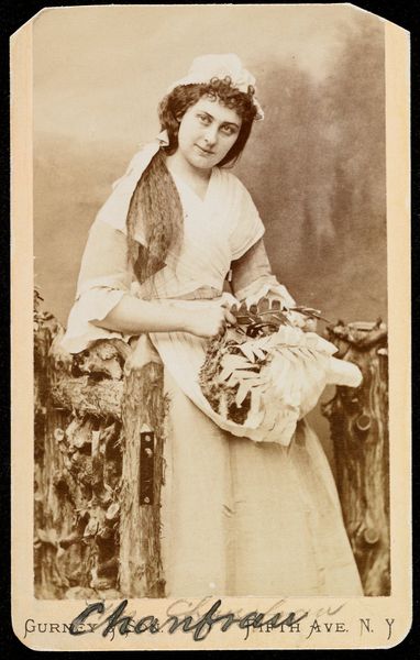 This carte-de-visite of Mlle. Thierèse, Paris, was produced by Goodwin & Company for Old Judge Cigarettes. Immediately, the composition strikes us with its dense arrangement of lines, tones and textures. The actress is enveloped in a thicket of organic forms that intersect, creating a deliberate contrast. The organic forms both reveal and conceal the actress's figure. This interplay is heightened by the limited tonal range, which emphasizes the formal structure over representational clarity. The image's function as an advertisement is cleverly integrated. By framing Mlle. Thierèse within this structured yet ambiguous space, it invites us to engage with her image. And to decode the underlying structural logic of desire and representation that operates within popular culture. The photograph presents a study in how form shapes our perceptions, demonstrating that even the most commercial images are complex sites of visual and cultural negotiation.