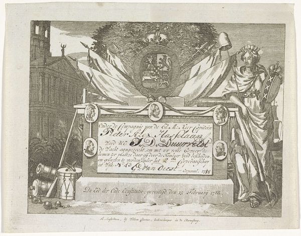 Giovanni Battista Tiepolo etched this landscape with a tomb monument in the 18th century. The print shows classical ruins and a large memorial with an inscription dedicated to Joseph Smith. The classical ruins here evoke a sense of transience and the passage of time, common in art across cultures. This motif reflects our preoccupation with mortality, echoed in the vanitas paintings of Northern Europe, where skulls and wilting flowers symbolize life's fleeting nature. The inscription panel, framed by classical architecture, suggests a deep connection to the past and a desire to immortalize achievements through art. Similar commemorative structures can be seen in ancient Roman monuments, indicating a timeless human impulse to memorialize. The emotional power of this image lies in its gentle invitation to contemplate our place in the vast historical narrative. It links us to both the personal memories of Smith and the broader cultural memory of classical antiquity. Through such symbols, Tiepolo taps into our subconscious understanding of time. This creates a powerful connection that transcends historical context. The motif of the tomb, ruins, and epitaphs—reappears in various forms throughout art history—a testament to our perennial quest to confront mortality and preserve memory.