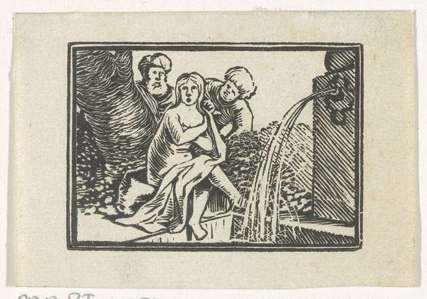 This woodcut, titled 'Two Men Kneeling Before a King,' was created by an anonymous artist. Though undated, the print depicts a scene laden with the visual codes of power and supplication. Here, we find ourselves confronted with an age-old tableau of hierarchical relationships. Two men kneel, their bodies bent in deference before a figure of authority. The king stands tall, a symbol of power, while the posture of the kneeling men speaks to the dynamics of class and social standing. We are invited to consider how identity is performed and negotiated in spaces of power. The setting, with armed figures in the background, alludes to themes of protection and dominion. This artwork reflects on the emotional weight of inequality and the personal narratives shaped by broader social structures. It prompts us to reflect on how our own identities are situated within these complex networks of power.