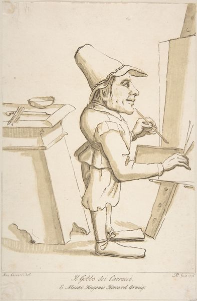 This etching, "Man met houten been en een oude vrouw," was created by Salomon Savery in the 17th century. The stark contrasts of light and shadow immediately draw you into the intimate yet unsettling scene. The composition, with its focus on the man’s disfigured leg and the looming figure of the old woman, challenges traditional notions of beauty and wholeness. Savery uses line and form to create a sense of tension and unease. The wooden leg, rendered with meticulous detail, becomes a focal point, a signifier of loss and vulnerability. The etching destabilizes established meanings, prompting us to question societal values of perfection and the marginalization of those deemed different. The juxtaposition of youth and old age, wholeness and disability, creates a space for reflection on mortality and the transient nature of human existence. This is not just a picture but an exploration of the human condition and the structures that define our perceptions of self and other.