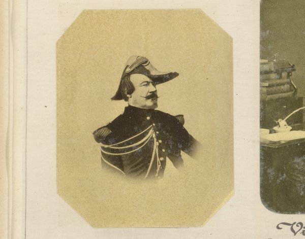 Here, we observe a monochrome portrait of King Oscar II of Sweden, an anonymous work capturing the monarch in his military regalia. The photograph's composition is dominated by the king's profile, sharply delineated against a somber background. This stark contrast emphasizes the contours of his face and the elaborate details of his uniform. The artist uses light and shadow to model the king's features, creating a sense of depth and presence within the small dimensions of the photograph. Notice the semiotic weight of the military attire. The helmet, with its pointed spike, and the array of medals, serve as potent symbols of power and authority. These elements are not merely decorative; they function as signs, communicating the king's status and role within the social structure of his time. The crisp lines and geometric forms of the uniform contrast with the softer, more organic lines of the king's beard and facial features. This interplay suggests a tension between the individual and the institution he represents. This portrait invites us to consider how images construct and reinforce systems of power and representation, echoing structuralist concerns about underlying codes and conventions that shape meaning.