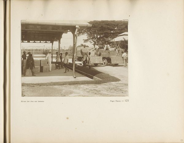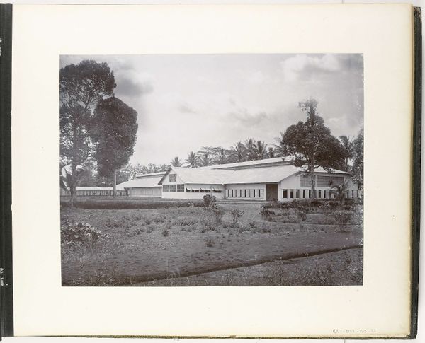 Editor: Here we have "Page 69 from a Photo Album of the General Association of Rubber Planters on the East Coast of Sumatra" (A.V.R.O.S.), dating to around 1924 or 1925. It's a vintage print and photograph. It’s fascinating how this photograph of a rubber plantation resembles an industrial landscape, so…ordered. What do you see in this piece? Curator: What strikes me immediately is the scale of production it hints at. Look at the repetitive structures, almost a modular design. This wasn't just about aesthetics; it's about optimizing the process of rubber extraction and processing, right? How does the materiality of rubber itself—its journey from tree sap to a globally traded commodity—influence the image's composition and its context? Editor: So, you're saying the image is shaped by the economic forces driving the rubber industry at the time? Curator: Precisely. The photograph isn't just documenting a landscape; it's showcasing the efficient infrastructure designed for maximizing profit. Consider the labor practices involved. This manicured landscape is directly related to resource extraction and the people involved. Can we extract that from viewing the image? Does knowing the purpose change how you perceive the image's message? Editor: I never thought about the workers. How their labor physically shaped this landscape... Curator: Think about the modernist elements as well: The clean lines of the buildings, and even the carefully planted rows of trees mirror modernist principles applied to resource management. And what does it reveal about the power dynamics embedded in colonial resource extraction? How might the landscape itself become a symbol of control and exploitation? Editor: So, it's not just a landscape photo; it's about how rubber production and colonialism reshaped both the environment and society. This helps me to appreciate its layered complexity. Curator: Absolutely. It shows us how art, even something seemingly straightforward like this photograph, is deeply intertwined with social, economic, and material conditions.