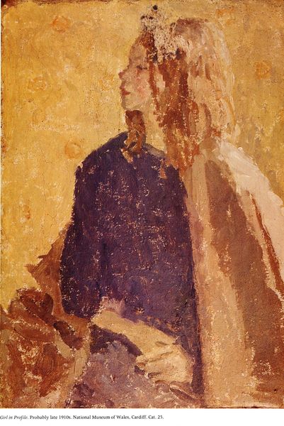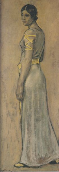 Editor: We're looking at Fujishima Takeji’s "Korean Woman," painted with oils, its date currently unknown. The piece feels like a fleeting impression, a whisper of a moment captured in paint. What do you make of this portrait? Curator: Oh, it’s like catching a memory fading at the edges, isn’t it? The brushstrokes are so fluid, almost yearning. For me, it’s not just a woman, but a representation of cultural encounter, seen through a Japonisme lens with heavy influence of Impressionism. You sense Takeji trying to grasp something intangible. Editor: Cultural encounter...tell me more. Curator: Well, Japan at this time, the late 19th/early 20th century, had opened up to the West but also held an interest in its neighboring countries. There's a softness here, an almost reverent approach in depicting the subject, as if she carries a story untold. Doesn’t the muted palette and the way the figure almost blends into the background give you a sense of longing? Editor: I do get that sense. Almost as if she's disappearing. The realism isn’t so sharp, so that would push the emotion to the foreground, I think. Curator: Precisely! He’s using the figure to evoke something larger—a sentiment, an atmosphere. Do you feel you understand it more now? Editor: Definitely. It’s not just a portrait, but a question. A reflection on the beauty and perhaps the ephemerality of a specific moment and culture. Thanks for your insight! Curator: My pleasure! I now understand this portrait so much more with you shedding your point of view!