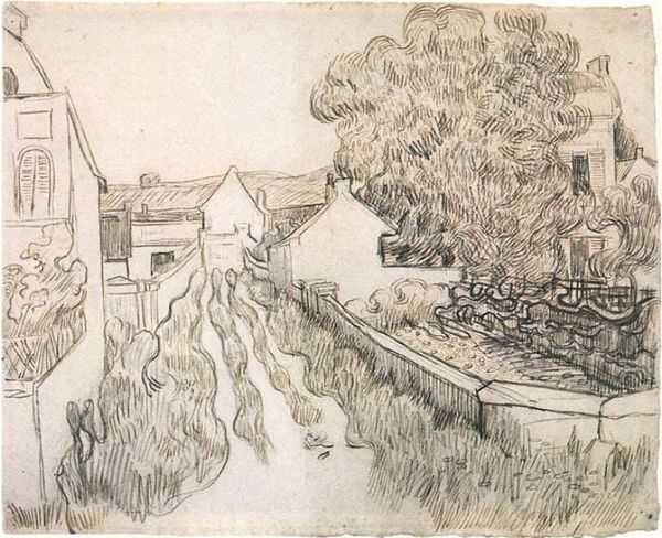 Curator: "Two Cottages at Saintes-Maries-de-la-Mer," made in 1888 by Vincent van Gogh using ink, invites us into a seemingly quiet rural scene. I'm struck by its simplicity. What are your first thoughts? Editor: I'm struck by the level of detail Van Gogh captures with just ink. It feels very immediate, like a quick sketch capturing a fleeting moment. It seems almost…nostalgic, maybe? How do you interpret this work? Curator: Nostalgia is interesting. Consider Van Gogh's positioning within the societal shifts of his time. He often depicted the working class and rural landscapes, but was this simply an aesthetic choice? How might his social consciousness play a role? Editor: I see what you mean. Was he perhaps idealizing a rural lifestyle that was already disappearing with industrialization? Almost like a visual commentary on class? Curator: Precisely! And look closer—the houses themselves, though humble, are rendered with a dignity and solidity. It prompts us to consider who occupied these spaces. What stories of labor, resilience, and community might these walls contain? Editor: So, the cottages aren’t just quaint buildings, but rather stand-ins for the lives and experiences of the people who lived there? That really shifts my perspective. I was looking at it just formally before, but now I'm thinking about the people implied in the picture. Curator: Exactly. And consider that Van Gogh, an outsider himself, was drawn to these marginalized communities. It begs the question of whose stories are deemed worthy of representation and preservation, then and now. It reminds us to look beyond the surface. Editor: It’s incredible how much depth you can find in a simple ink drawing. I definitely see it in a new light now. Curator: Art is never neutral. Examining it through a critical lens reveals layers of meaning that resonate even today.
