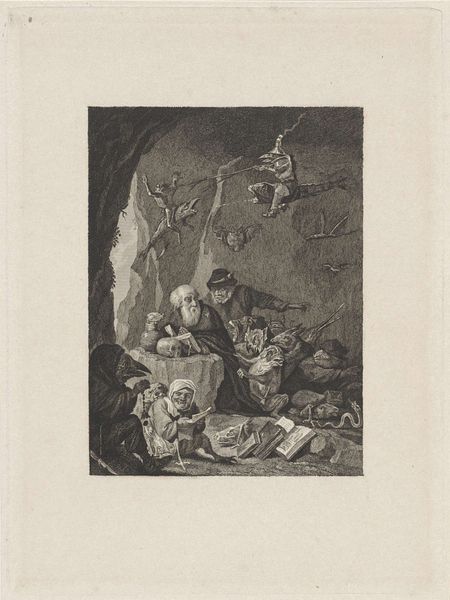 Curator: Here we have "The Agony in the Garden," an engraving dating to after 1651. While the artist is anonymous, the print itself is quite compelling. My initial reaction is one of deep shadow and implied torment; the dense crosshatching creates a somber, almost claustrophobic atmosphere. Editor: Agreed. The gloom is almost palpable. Let's consider the context. The piece portrays Jesus in Gethsemane, wrestling with his fate, as his disciples sleep nearby. This resonates powerfully, especially viewed through a lens of societal struggles against oppression. Think of its depiction of isolated suffering amidst the indifference of the collective, and its historical ties with labor-intensive methods of engraving. Curator: Precisely. The use of engraving as the printmaking technique here is significant. Its intensive labor resonates with ideas of social inequality in creative industries. What appears as a spontaneous or divinely inspired image has passed through skilled manual work. The matrix, as it were, involved someone producing it. Editor: The figures also present certain visual dynamics within that historical lens. Jesus is obviously meant to command our sympathy but are the other men sleeping? Do they choose to look the other way? And that angel that comforts Jesus-- what does it say that that source of solace, perhaps “divine intervention," is something that may have never been afforded in the lives of everyday, and especially disenfranchised people? Curator: Very good points. If we examine it in relation to Dutch printmaking of the era, prints were often affordable ways to disseminate information and moral stories. The texture and line variation achieved through engraving allowed for a certain level of nuance and detail to produce a narrative that could then spread, affecting and shaping a population. Editor: Ultimately, I appreciate how this unassuming engraving, created using demanding labor, can spur us to reflect on our own societies, histories, and systems that lead to both profound isolation and to what exactly becomes someone’s "garden" in times of suffering. Curator: A final reflection; I’d say that this careful manipulation of material – the copper, the ink – creates an image designed for mass production and distribution. It transcends mere decoration, but a conscious effort of cultural creation through technique, texture, labor, and access.