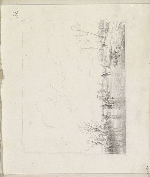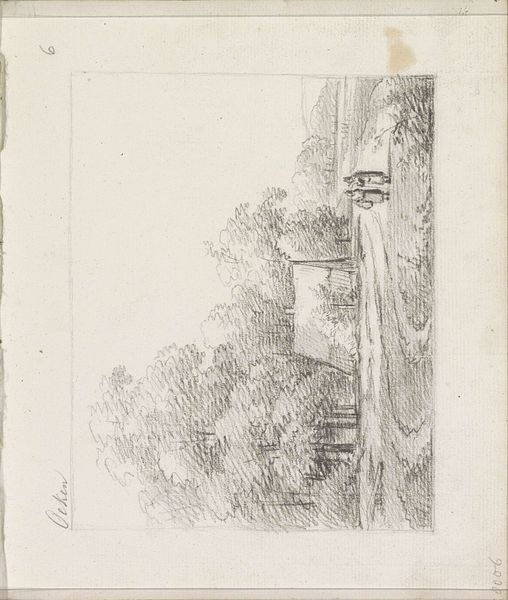 Editor: Here we have Andreas Schelfhout’s "Mountain Landscape with River," likely created between 1825 and 1829. It’s a delicate pencil drawing on toned paper, housed at the Rijksmuseum. It has this unfinished, almost dreamlike quality to it. What catches your eye when you look at this piece? Curator: What strikes me is the directness of the material use. It’s just pencil on paper, but it speaks volumes about the labor involved in creating this Romantic landscape. Think about the production of these materials at the time—the graphite mined, the paper milled. It’s a commercial process, isn’t it? Editor: That’s an interesting perspective. I hadn’t really considered the industrial aspect of it. I was more focused on the scene itself and its natural qualities. Curator: And that scene is carefully constructed, a product of Schelfhout's own labor. He wasn’t merely capturing the landscape, but transforming raw materials into a desirable image. Note the controlled strokes building the mountain and river forms – how the labor becomes concealed to enhance the picturesque quality of it all. Editor: So, are you suggesting that the romantic vision is a direct result of industrial production? It’s sort of highlighting, or perhaps even obscuring, the human cost of romanticizing nature? Curator: Precisely! The consumption of landscapes, whether in painting or prints, had a social context rooted in industry and exploitation. Schelfhout offers a delicate window into the era's rapidly changing society. Editor: That’s fascinating. I’ll never look at a Romantic landscape the same way again! Seeing the connection between the artistry and material production definitely adds a new layer of understanding. Curator: Indeed, thinking about these connections opens up new avenues for art appreciation and inquiry.