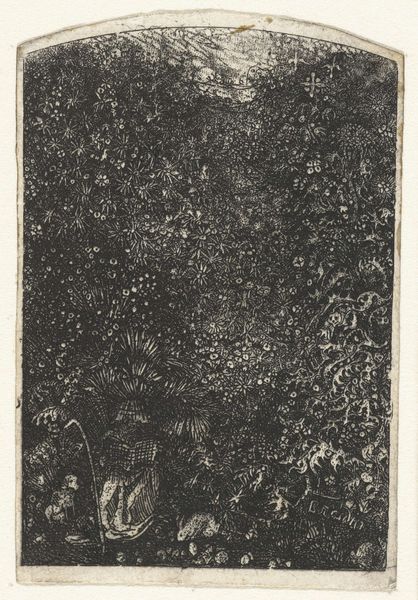 Curator: Ah, this pulls you right in, doesn't it? Like stepping into a dream, slightly blurred at the edges, a whispered memory... Editor: Yes, "Stevenage," an etching crafted around 1902 by F. L. Griggs. I’m struck by its composition: a delicate interplay of light and shadow. The linear precision of the etching captures depth, leading the eye through a path populated with grazing sheep. Curator: The sheep! They’re practically dancing on that path! It reminds me of childhood storybooks, a place where nature feels alive and breathing, almost sacred. I imagine that moment where the light starts dancing across the green and you see figures come to life. Do you see what I mean? Editor: I do. Griggs masterfully uses line to define the forms, constructing a perspectival space with those receding sheep. Semiotically, the path guides the viewer, and the details such as trees become symbolic components defining depth of space through careful tonal gradients. The material of etching itself enables such a tonal palette. Curator: It’s funny, because technically it's quite realist... almost medieval in that realism... but that ethereal light sort of distorts it and evokes more mood than pure form. It's really affecting, makes you wonder what that place really meant to Griggs... Editor: Perhaps a commentary on pastoral life at the turn of the century? The title grounds the scene, yet the ethereal quality elevates it beyond a simple depiction. Griggs invokes themes within romanticism as seen with this piece. Curator: Well said. All this talk has made me ready to go rambling through misty fields… Time to get out of the gallery, don’t you think? Editor: Agreed. And next time, perhaps we'll analyse such journeys. It offers much for interpretive pursuit in subsequent dialogues, for certain.