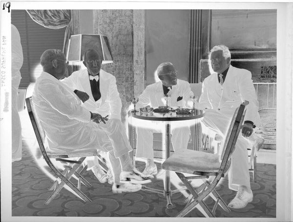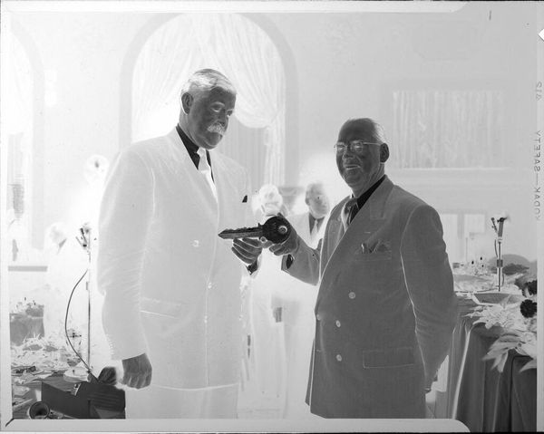 Untitled (two men shaking hands at podium)Â 1948
