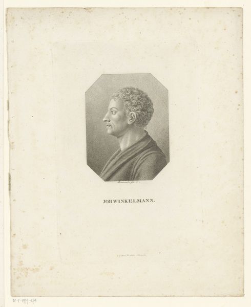 Curator: Ah, this portrait from 1819 depicts August Friedrich Ferdinand von Kotzebue, a figure captured in print by Johann Michael Siegfried Lowe. Quite an evocative piece. Editor: My first thought? Austerity. It feels so...controlled. All those fine, precise lines, you could slice cheese with them. It’s not exactly shouting ‘party time’. Curator: Indeed. The engraving medium lends itself to that crispness, almost a neoclassical ideal shining through. Consider the clean profile, the restrained detail. It reflects a desire for order, typical of its period, really. Kotzebue was a well known German dramatist, also. Editor: Right, a playwright. You'd expect a bit more drama then, wouldn't you? Perhaps Lowe was going for gravitas, emphasizing intellect over, say, flamboyant artistry. Instead it shows some stoic face. He almost looks like he knows his work wasn’t really all that. Curator: His reputation suffered a blow during his own time and afterwards as a figure who spoke in favor of conservatism during a time of revolutionary thought. And was rather notoriously assassinated because of it. Editor: No wonder, with a profile that serious! Poor bloke probably never cracked a smile. But you see, looking at it now, I find a kind of detached honesty. It's unflinching in its portrayal. I find it both disturbing and a little charming at the same time. Curator: That blend of emotions you're feeling likely speaks to the print's success, doesn't it? It has become an archive of socio-political attitudes and that sense of individual destiny—all etched on the copperplate and here as print. Editor: Exactly! We both are making sense of those impressions to which you opened my eyes in a way I would otherwise be blind to them. And as a friend put it once: "You never truly possess a feeling until you have turned it into an image.”