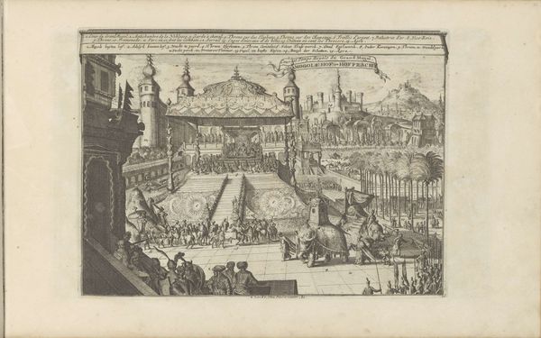 Editor: Here we have "Firework Display, Nuremberg 1649," an etching and drawing from around the mid-17th century, showcasing quite the festive scene. There's almost a frenetic energy in the line work; it feels very active, with all those people and fireworks. What do you see in this piece? Curator: The most striking element for me is the performance itself – fire transformed into spectacle. Fire, of course, is an ancient symbol of purification, destruction, and, perhaps most importantly, transformation. Do you notice how the city itself almost recedes in importance to this dramatic display? Editor: Yes, it’s almost secondary. Like the townspeople are spectators at an awesome, powerful event rather than active participants. Curator: Exactly. And the fireworks, as fleeting as they are beautiful, become metaphors for power and perhaps even divine presence. The "Vivat" inscription on the structure at right solidifies this: fire used for celebration. Think of triumphal arches. How is it celebrated and whose presence does it signify? The composition mirrors earlier triumphal entries from the 16th and 17th centuries. The power is displayed as celebration to evoke emotion from the people. What sort of emotional weight does that visual association evoke in you? Editor: The association wasn't immediate but knowing it feels powerful, like ephemeral demonstrations of greatness made visible for the masses, like projecting influence... fleeting but memorable. Curator: Precisely! And that lasting impression, preserved through the etching, ensures the cultural memory lives on, long after the last firework fades. It makes you wonder, what symbolic 'fireworks' do we use today to shape public perception? Editor: That’s fascinating to consider. I came in seeing just a historical depiction, but now I see the potent symbolism at play. Curator: Indeed! Every line, every burst holds meaning, connecting us to centuries of spectacle and its impact on collective memory.
