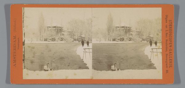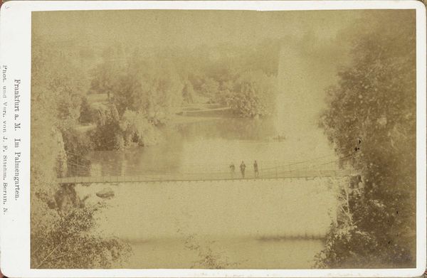 Curator: This daguerreotype is a real window into the past! The artwork is entitled “Meer in Prospect Park, gezien vanaf de Binnen Bridge, Brooklyn" and it dates between 1871 and 1888. Editor: It feels remarkably serene. The stillness of the water and the hazy trees create a wonderfully calm sensation, as if time is holding its breath. Curator: Absolutely. One can sense the labour involved to construct Prospect Park and capture it so perfectly. Those benches crafted by human hands with nature reflected nearby in the park... it speaks volumes of leisure. Editor: There’s also a fascinating contrast at play here, between the crafted elements – the wooden bridge, that perfectly positioned bench, and the sheer industrial process of photography—and the seemingly untouched nature around it. Curator: Yes, there's almost a celebration of the accessibility that public works provides. Imagine someone stopping to capture that very scene; someone perhaps who has rarely seen it before… Editor: Exactly! It captures an instance of collective use, not only is this space for viewing, but also its material consumption through artistic rendering into this particular historical artifact… This isn’t just any photograph. It reveals complex relationships tied up around social status represented materially within industrial society Curator: It truly reflects that desire for shared moments and the ability of art to document even small everyday experiences… And in a way, doesn’t it hint at timelessness through changing eyes too—since how we observe nature differs now just compared decades earlier after having looked? Editor: Maybe! But also there is something bittersweet now reflecting back from here given our climate anxiety. Who benefited the most off that landscape after all? Now questions arise as whether such leisurely practices and materials remain environmentally sustainable in modern times. Curator: True enough. Well, seeing things side-by-side sheds such completely unique illumination onto perspectives otherwise forgotten inside daily life during then until again right here… Now…! Editor: I appreciate seeing art challenge both comfort and ideas after some careful looking through such mediums as “Meer” that we have right today!
