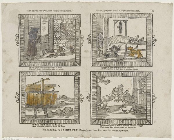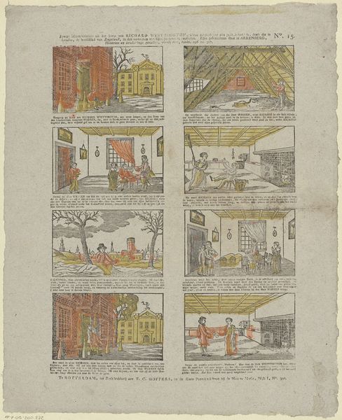 Christiaan Jacob Schuyling created this print, "Eenige bijzonderheden uit het leven van Richard Whittington," sometime before 1830, depicting scenes from the life of Richard Whittington, an English merchant and politician who lived in the late Middle Ages. The print, likely intended for a broad audience, presents a narrative of social mobility. Whittington rises from poverty to become the Lord Mayor of London, a story that underscores themes of perseverance and opportunity. Schuyling, working in the Netherlands, taps into a familiar tale that resonates across different cultures and socio-economic backgrounds. The narrative of Whittington reflects the aspirations of a society undergoing significant transformations with the rise of a merchant class. While seemingly straightforward, the imagery prompts reflection on class structures and access to power. This work serves as a reminder of how deeply ingrained narratives of aspiration and success are in the cultural landscape. It’s a reminder that stories can offer a critical lens through which we examine our societal values and biases.