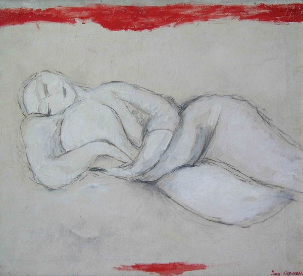 This is an untitled work by Zoe Lerman. It has a dynamic composition of lines and shapes, appearing almost weightless. The canvas is alive with gestural strokes, primarily in muted whites and grays, creating a sense of fleeting movement. The skeletal forms suggest figures in motion, perhaps a dancer, evoking a feeling of ethereal grace. Lerman challenges our perception through her strategic use of negative space, inviting us to complete the forms, thus engaging our mind. The absence of clearly defined boundaries questions traditional notions of form and structure. This ambiguity reflects the flux of modern life, mirroring post-structuralist ideas about the instability of meaning. The sketch-like quality destabilizes any fixed narrative, prompting a continuous re-evaluation of the artwork's content. It is a visual reminder that art exists not as a static object but as an open field for interpretation.