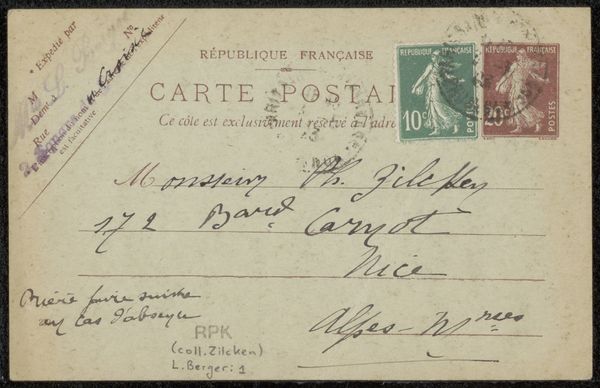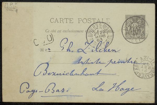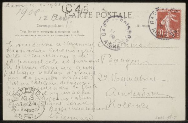 This postcard to Andries Bonger, by Emile Bernard, shows a loose, flowing script. Look at how the writing becomes the image itself. Bernard uses brown ink that bleeds slightly into the paper, creating soft edges. It's not about precision; it's about the movement of the hand, the pressure on the pen, and the way the ink responds to the surface. It is like each word has it's own aura. The lines dance and loop, a kind of choreography of thought. See how the address is written, notice how the Amsterdam is underlined with two very confident strokes? You can imagine Bernard, pen in hand, deep in thought, sharing a piece of himself with a friend. There's a sense of immediacy here, a direct connection between the artist's mind and the viewer. The stamps in the corner sit next to the lettering and add another layer to the image, echoing the blue of the ink. This postcard reminds me a little of Cy Twombly, whose work also celebrates the gestural and the imperfect. Like Twombly, Bernard invites us to embrace the beauty of the mark, to see the potential for expression in the simplest of gestures.