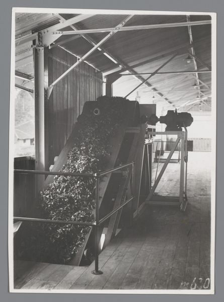 This photograph, Centrifugestation van suikerfabriek Boedoeran in Sidoarjo op Java, by Isken, shows the interior of a sugar factory, its monochrome palette, a study in browns and beiges, creates a sense of depth and density. The photograph is a study in textures. The rough bags of sugar lined up in the foreground of the photo contrast with the smooth surfaces of the machines in the background. The composition is complex with many shapes, lines, and patterns which all work together to create a cohesive image. The eye is led from the foreground to the background, with the lines of the machines. The picture plane is almost entirely filled, giving the impression of a bustling industrial space and also alluding to the labor and processes of sugar production. I find myself reflecting on the way that work is made invisible, by contrast, the processes of artmaking remain visible in the final product. Like a painting, the photograph is also an index of a process.