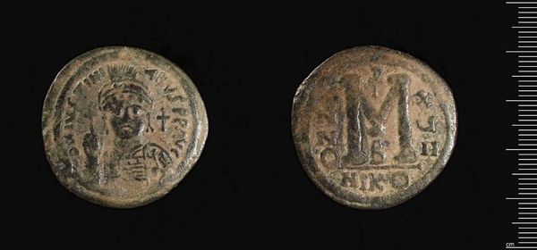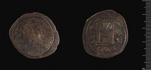 Editor: Here we have a Denarius of the Vascones, a silver coin from ancient Pamplona. It’s tiny, but the details are impressive. I’m particularly drawn to the intricate patterns and textures. What stands out to you? Curator: The visual tension between the static profile on one side and the dynamic horseman on the other is compelling. Note the contrasting textures, the smooth fields versus the beaded borders. How do these formal elements contribute to the coin’s overall aesthetic impact? Editor: It’s like a story told through textures and shapes. I hadn’t thought about it that way. Curator: Exactly. The visual language—the interplay of line, form, and texture—conveys meaning beyond mere representation. We are meant to understand this as an artifact of significance. Editor: This makes me see the coin as so much more than just currency. Thanks! Curator: Indeed, a deeper appreciation of the formal qualities enriches our understanding.