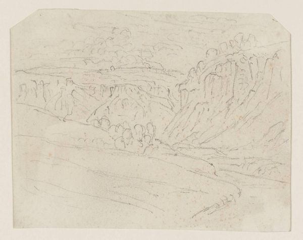 Editor: This pencil drawing, "The Waterfalls of Tivoli," was created in September of 1855 by Alexander Gwinner and it is currently at the Städel Museum. I’m struck by its delicate rendering; the scene almost dissolves into mist. What do you make of it? Curator: Well, the initial thing that jumps out at me is how Gwinner uses the humble pencil. The limitations become the strength, focusing on labor instead of just representation. Think of the graphite source, likely mined and processed, turned into an implement for crafting an image tied to Romantic ideals. Editor: That's fascinating! I hadn’t considered the pencil itself as an artifact of industry. Do you see any connection between the materials and the landscape depicted? Curator: Absolutely. Tivoli was a site romanticized, and the pencil, in this case, offers both access and constraint. While industrial pencil production enables widespread image-making, the subtle, muted tones might underscore the futility of capturing the sublimity of nature itself. How do you interpret that? Editor: So it's almost a comment on the tension between man's attempt to document the awe-inspiring versus nature's resistance to that? Curator: Precisely. This isn’t just a picturesque view, it is the labor, consumption, and technology behind such depictions we are seeing, really. It makes one consider: for whom, and for what end, was the sketch created? Editor: I see now; it opens up a whole new level of thinking about this piece. I will definitely have to dig deeper into that, and thank you so much for helping me understand this from this different point of view. Curator: Indeed, considering the means of production is always crucial. It encourages critical engagement beyond aesthetics.