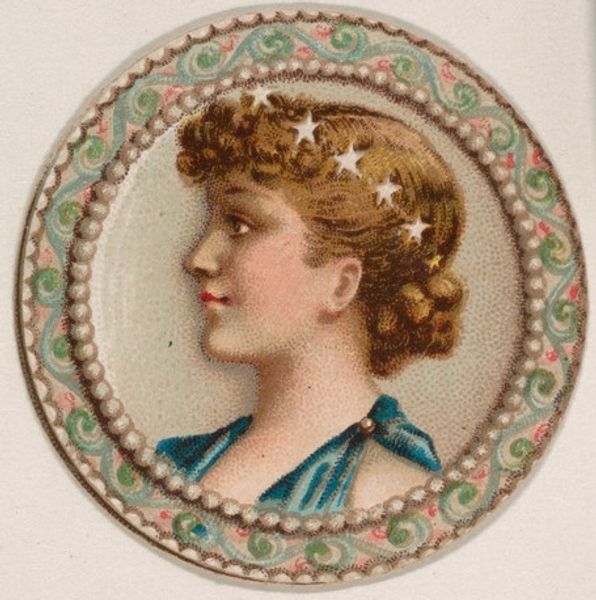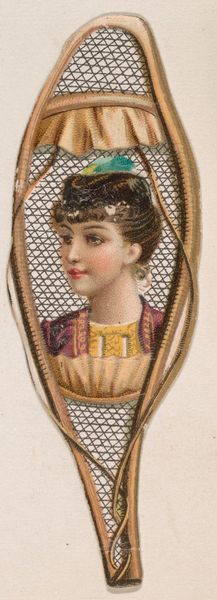 Editor: Here we have “Billfold, from the Novelties series (N228, Type 3)” made in 1889 by Kinney Brothers Tobacco Company. It’s a drawing or print on paper depicting a woman inside of what looks like a billfold or wallet. What catches your eye about this object? Curator: What interests me most is understanding this piece in the context of mass production and consumption. It is an advertising card distributed by a tobacco company. Let’s consider the materials: inexpensive paper, likely mass-produced printing techniques. It makes me think about the labor involved in its production, both in the tobacco fields and in the printing factories. Editor: That’s an interesting angle! I was focused on the portrait itself and the academic style, but you are thinking more broadly about the social system of production. Do you think this emphasis changes how we think about the subject matter? Curator: Absolutely. The image itself becomes secondary to its function as a commodity, a tool to drive consumption of tobacco products. Who was the target audience? How did the aesthetic values of the time, evident in the “academic art” style, contribute to the allure of the product? These are vital questions. Editor: It seems the artist used watercolors. Curator: Let's not forget the watercolor medium is itself part of this economic network, impacting what an art form signifies. This "novelty" was disposable, meant to be collected but ultimately discarded as new series were released. The ephemeral nature of these cards mirrors the transient nature of consumer culture. Editor: It’s fascinating to consider art and labor in that way, which shifts my focus to think about who created the actual billfold which appears printed on the card? Curator: Exactly! By examining the material processes involved in creating this card, we challenge traditional hierarchies and find connections between high art and everyday objects. Editor: Thinking about the piece like that makes me appreciate that the artwork offers an interesting look into consumerism and advertising from that time! Curator: And it compels us to ask more profound questions about the relationship between art, industry, and society.