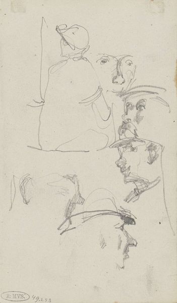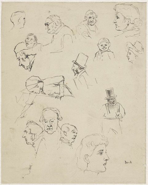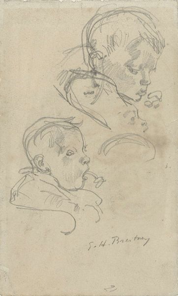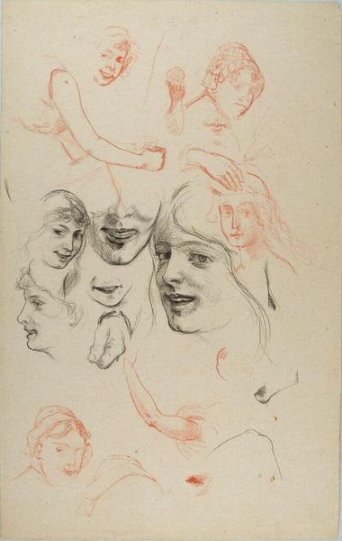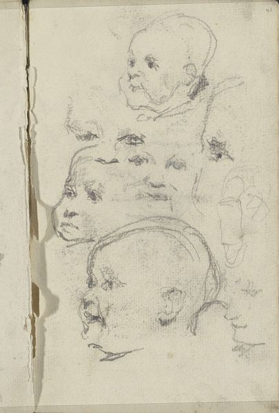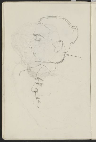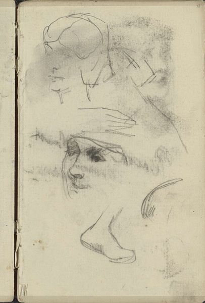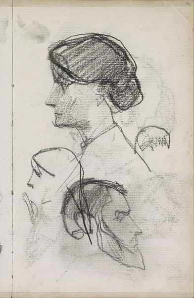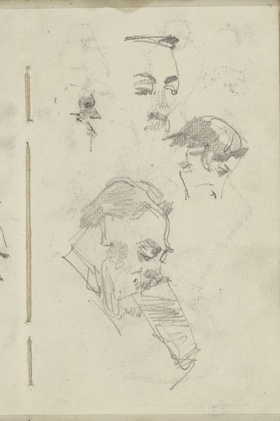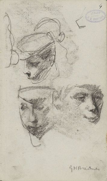 George Hendrik Breitner made this sketch called 'Vrouwenhoofden', or 'Women's Heads', using graphite. Breitner lived during a time of immense social change, influenced by the rise of industrialization, urbanization, and shifting class structures. He was known for his unflinching portrayals of working-class life in Amsterdam. These women, sketched with a raw, immediate quality, challenge the idealized images of women common in art at the time. Breitner captures a sense of individuality in each face, moving away from traditional, romanticized representations. The quick strokes and unfinished quality of the sketch give us a sense of intimacy. Breitner's work invites us to consider the diverse experiences of women in a rapidly changing society, revealing an emotional honesty that speaks to the complexities of identity and representation.