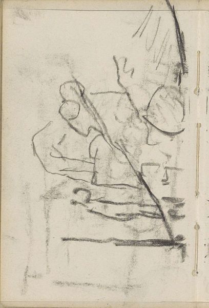 Editor: Here we have "Grondkruier," a pencil drawing by George Hendrik Breitner, likely from around 1900 or 1901. It feels like a fleeting glimpse of a moment, a quick sketch from a larger study perhaps? What do you see in this piece? Curator: I see the urgency of urban life, especially class dynamics, rendered with remarkable immediacy. Breitner, often called the 'painter of Amsterdam,' wasn't just capturing scenes, he was capturing the pulse of a rapidly changing society. Notice the visible strokes, the unfinished quality. Editor: It’s like we're looking over his shoulder, right into his sketchbook. Curator: Exactly! This immediacy speaks to the experience of the working class, a population often overlooked or romanticized in art of the time. Breitner offers us a perspective, not just a picture. Consider, who is absent from this image? Where are the symbols of bourgeois comfort, or idealized representations of labor? The absence speaks volumes. Editor: That's a really interesting way to look at it. I hadn't thought about what's missing. So the sketch itself becomes a statement? Curator: Precisely. The quick, almost frenetic lines mirror the tireless labor the subject performs. The rough sketch avoids idealization, bringing the viewer face to face with the reality of labor and the unvarnished portrayal of working-class existence during the turn of the century. Editor: I’m beginning to appreciate how a simple sketch can contain so much social commentary! Curator: It's a reminder that art is not always about beauty or perfection, but about truth and representation, about whose stories get told, and how. Breitner is choosing to foreground the reality of this worker, and that’s a radical act. What do you take away from this? Editor: That even unfinished artworks can spark important conversations about society, representation, and the artist's choices. Thank you! Curator: My pleasure. Let's keep questioning the narratives within the art we encounter.