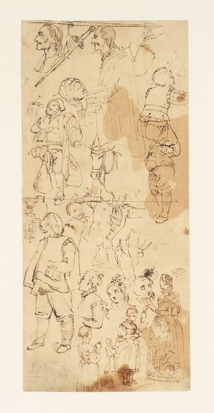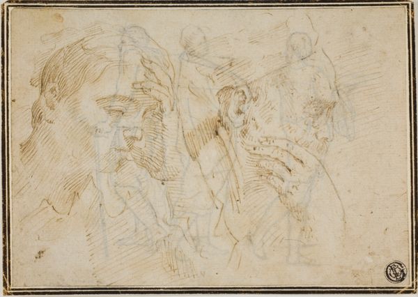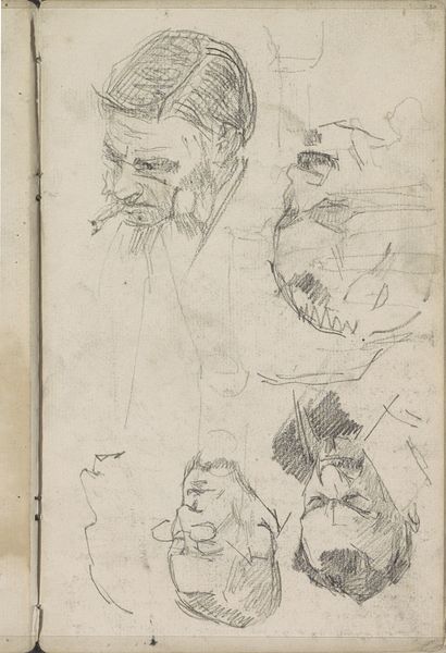 Fritz Bamberger made this study sheet of heads, using graphite pencil, and some brown ink wash. It seems that Bamberger was trying to capture the essence of human character through quick, repetitive sketches. The choice of graphite on paper speaks to the immediacy and accessibility of drawing as a medium, compared to the more considered and expensive process of painting. Graphite allows for rapid mark-making and easy correction. The swiftness of the medium complements the subject matter, in what feels like an informal, and personal exploration of different characters and expressions, rather than a formal portrait. The study sheet format is a glimpse into the artist's working process, an intimate look behind the scenes of the work and labor involved in image making. It challenges the idea of the artist as solely a creator of finished artworks, and instead foregrounds the importance of practice, experimentation, and the value of craft in art.