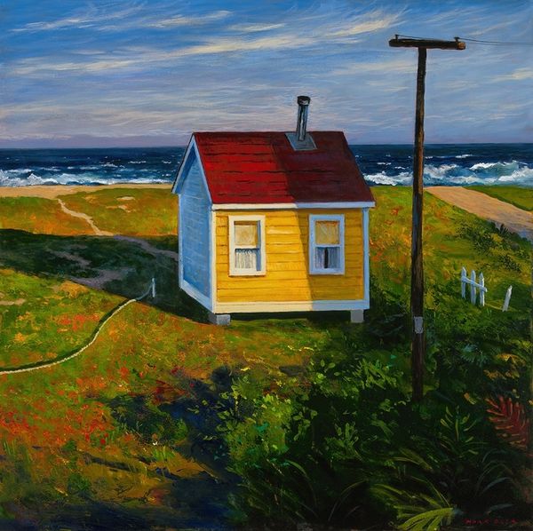 Mark Beck painted "Beautiful World" sometime in the 20th century, though the exact date is unknown. It depicts a rural scene, perhaps somewhere in the United States, with a small, modest house set against a backdrop of rolling green hills. The painting invites us to consider the relationship between the individual and the landscape, and how social and economic factors shape our perception of beauty. Is this a truly beautiful world, or is the title ironic, pointing to the economic hardships faced by many rural communities in the 20th century? The weathered fence and simple architecture suggest a life of hard work and limited resources. The scene may comment on the social structures of its time, perhaps critiquing the idealized vision of rural life often presented in art and popular culture. To better understand this work, we might consult historical records, economic data, and personal accounts of rural life in 20th-century America. Only then can we fully appreciate the complex social and cultural forces at play in "Beautiful World."