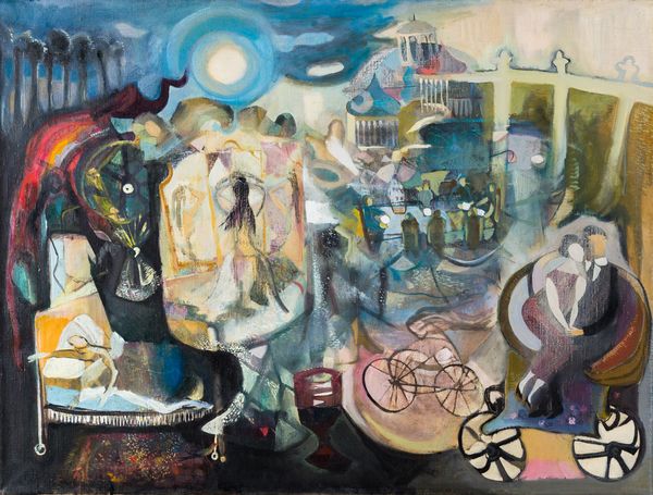 Benny Andrews made this painting, Savannah's Credit Card Protest, with oil and collage on canvas. There is something so raw about the paint, like seeing the world in a single, immediate gesture. Look at the flatness of the figures; they remind me of cut-outs, especially those in the foreground, carrying their baskets. The paint is applied in thin layers, almost translucent in places, creating a surface that feels both fragile and resilient. This connects with the theme of protest, the people are present and demanding change. The muted colors, mostly browns and grays, make the scene feel like a memory. Yet, there's a tension between the flatness of the figures and the illusion of depth in the street, between the representational scene and the formal elements of the painting. Andrews' work, with its combination of painting and collage, always struck me as an ongoing conversation, a way of embracing multiple perspectives and histories at once. It's like Romare Bearden meets Philip Guston, where storytelling and social critique blend. It's never just one thing, and that’s what makes it so compelling.