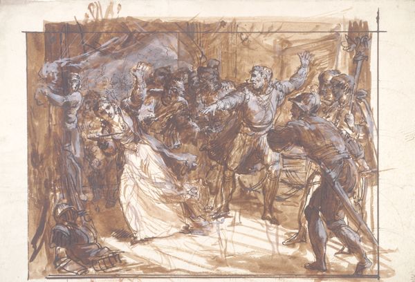 Constantin Guys created this study with pen and brown ink, watercolor, and graphite on paper. Born in a tumultuous time, between the French Revolution and the rise of industrialization, Guys devoted his artistic life to capturing the ephemeral moments of modern life. Here, we see a religious ceremony, possibly a blessing of new bells, staged under a tent. The theatricality of the scene, with its focus on spectacle and ritual, invites us to consider the role of religion in shaping social identity. The blurred, rapid strokes and the subdued palette evoke the era's atmosphere of change and uncertainty, when the traditional social order was being questioned and reshaped. Guys was deeply invested in capturing the essence of his time; he once said, "The pleasure of being in the crowd, of feeling the ebb and flow of human life." "Study" is an invitation to reflect on the complex interplay between tradition, faith, and modernity that continues to define our experience.