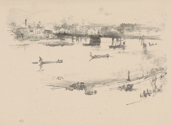 Curator: Denman Waldo Ross created this watercolor work, titled "Venice, Italy." It's part of the Harvard Art Museums collection. Editor: It has a wonderfully melancholic feel, doesn't it? The muted tones create a sense of stillness and quiet introspection. Curator: Absolutely. Venice as a site carries so much historical weight, representing both a powerful trading empire and a place of cultural exchange—but also a site of inequality. Its famous canals often evoke romantic images, but also functioned as routes of commerce, connecting the city to global networks of trade and power. Editor: Precisely. The composition guides the eye: the dark pilings in the foreground acting as anchors, leading us toward the lighter buildings and the subtle gradation of the sky. Curator: Watercolors like this also became popular among travelers seeking to capture their experiences abroad—the act of painting itself becoming a form of engagement with a place and its history. But it also speaks to a certain privileged perspective. Editor: I see the subtle semiotic interplay between architectural solidity and the fluidity of water, between the natural and the man-made. Curator: Yes, and viewing it through a contemporary lens challenges us to consider whose Venice is depicted and whose stories are being told. Editor: Indeed. A seemingly simple landscape reveals itself to be quite complex. Curator: It offers a glimpse into the past, prompting us to reflect on the present.