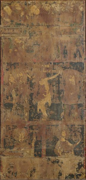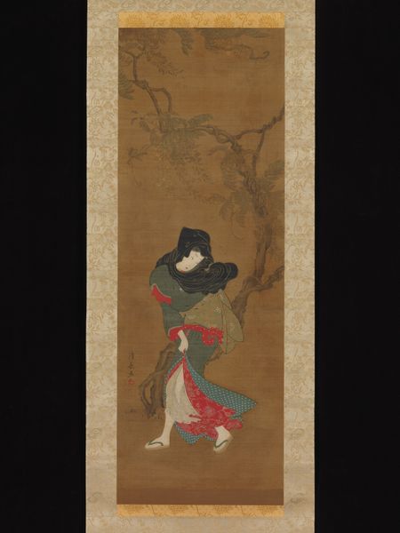This hanging scroll, attributed to Ashikaga Yoshitane, was made in Japan using ink and color on silk. Silk, known for its smooth texture and sheen, was a luxury material, traded along the Silk Road, and became significant in religious and secular art. Here, the silk support has a complex relationship to the image it carries. The threads have been carefully prepared and woven, then dyed to create a receptive surface for the painting. Notice how the ink appears to float on the surface, creating depth and texture. The artist’s hand and brush are evident, but the qualities of the material also influence our perception of the image. The painting has then been mounted as a hanging scroll with decorative silk borders. The creation of silk and the skill required for painting underscore the connection between material, making, and cultural significance. This challenges any simple division between ‘fine art’ and ‘craft’.