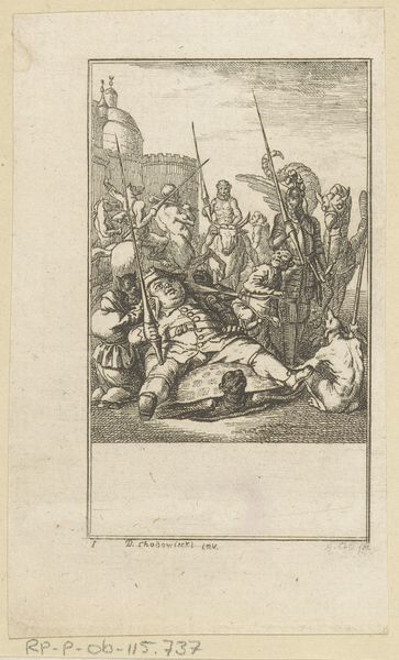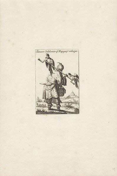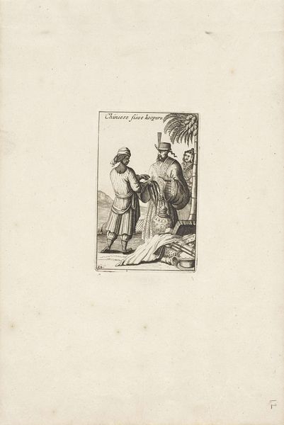 Editor: This engraving, titled "Two People from Siam and a Chinese Soldier" by Pieter Schenk, made between 1682 and 1711, seems so focused on the detail of the clothing. How do you see this piece? Curator: Well, from a materialist perspective, it’s important to consider the process of engraving itself. The meticulous labor involved in creating these lines, this kind of dissemination of images, also speaks volumes about the Dutch Republic's interest in, and commodification of, the "exotic" other. What purpose did that detailed attention to the garments serve, given the context? Editor: You're suggesting the clothing wasn't just about accurate depiction, but something else entirely? A commentary on trade, maybe? Curator: Exactly. Think about what these finely rendered textiles signify. They weren't readily available; they were the products of trade routes, colonial ventures. The engraving, in turn, becomes a commodity itself, consumed by a European audience eager to possess these images, but at a cost. This art exists within a nexus of labor exploitation and trade relationships, wouldn't you say? Editor: Absolutely, it gives the artwork an almost transactional meaning in addition to being aesthetically appreciated. Now when I look at the three figures I can also read the tension on what Schenk and his consumer might have thought of cultural differences and their implications. Curator: And seeing how these objects – clothing, and the image itself – are consumed and circulate adds another dimension to how we see Baroque art. Editor: It certainly makes you consider the economic underpinnings of art production back then and how tastes and collecting habits are developed! Curator: Indeed. Examining the materials and the means of production pulls back the curtain on the social context in ways that simply looking at "beauty" can obscure.