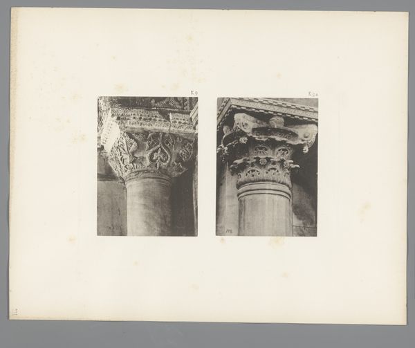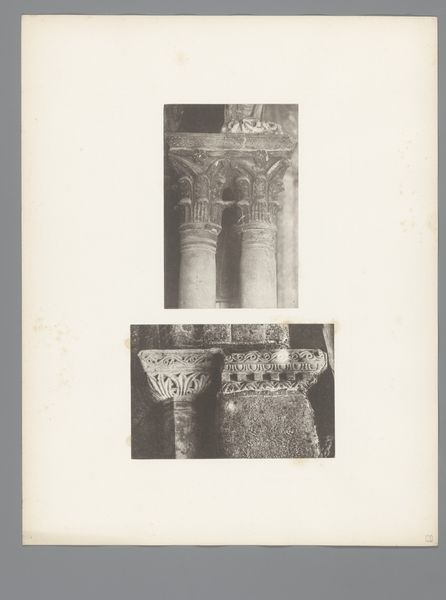 Here we see two studies of Corinthian capitals from San Marco in Venice, rendered by Carl Heinrich Jacobi with a keen eye for detail. The photographs present a monochrome palette with a focus on texture and form. The composition, split into two distinct sections, isolates these architectural elements, inviting contemplation on their intrinsic structure and design. Jacobi's lens captures the ornate carvings, emphasizing the play of light and shadow. The fluted shafts of the columns rise to meet the acanthus-laden capitals, where classical motifs intertwine. This structured representation reflects a broader engagement with architectural semiotics, decoding how classical forms were intended to communicate power and cultural values. The high contrast illuminates the texture of the stone, suggesting both permanence and the subtle erosions of time. It is not merely a record but an analysis, highlighting how form serves meaning within the grand narrative of Venetian architecture.